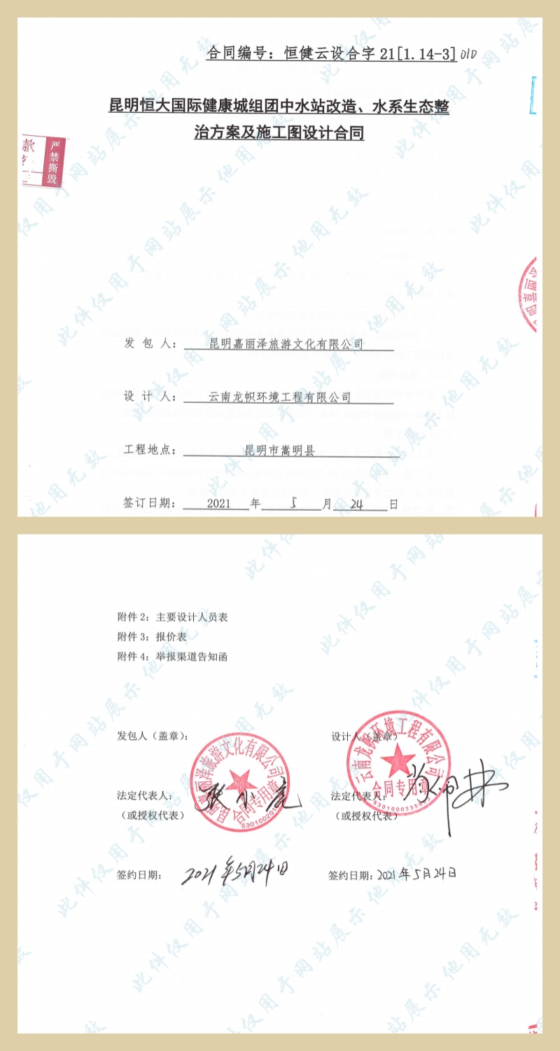 1、項目名稱:昆明恒大國際健康城組團中水站改造、水系生態(tài)整治設計工程